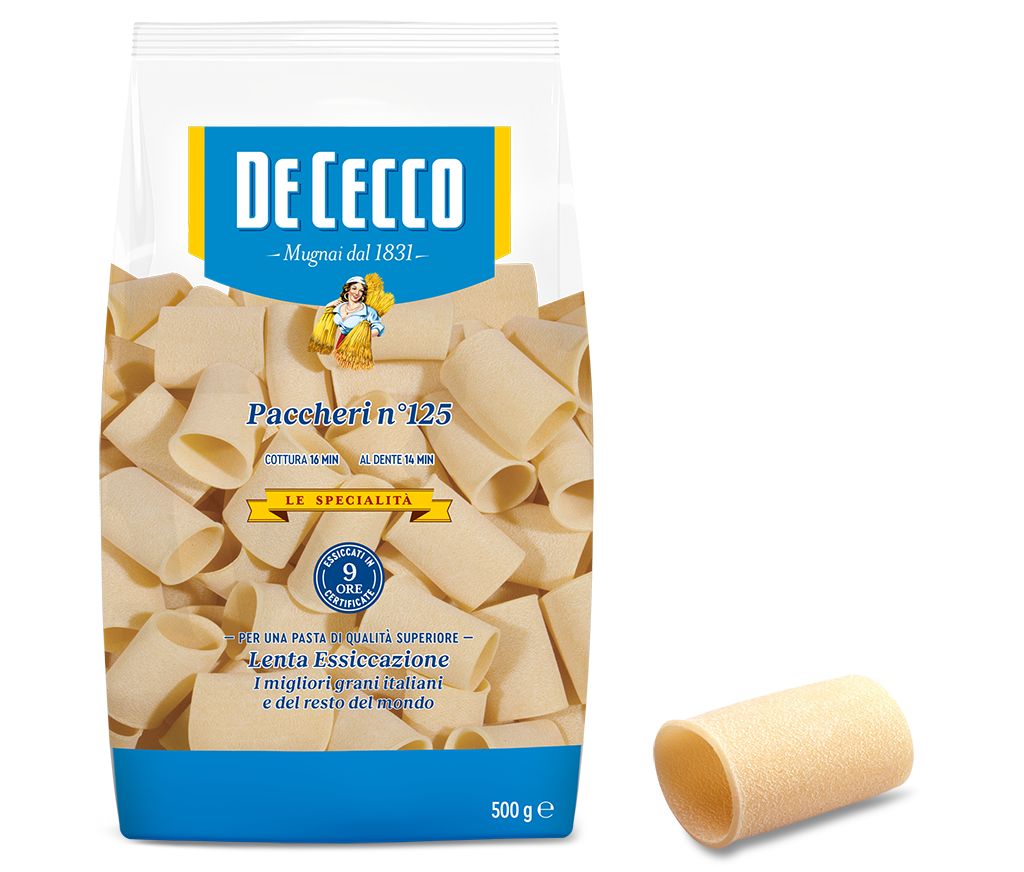 La sua forma imponente, con pareti spesse e righe profonde, rivela in cottura una consistenza ricca, autorevole, straordinariamente al dente. Ogni morso è un incontro tra carattere e armonia, tra il profumo caldo del grano e la sensazione appagante di una pasta che racconta la sua storia attraverso la materia.