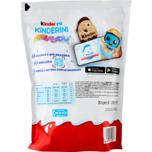 I Kinder Kinderini sono biscotti frollini al latte e cacao che si distinguono per la loro particolare forma di ovetto Kinder e per le diverse espressioni facciali impresse su ciascun biscotto, rendendoli divertenti e creativi. Sono decorati con uno strato cremoso al gusto Kinder e sono pensati per la colazione e la merenda, incoraggiando i bambini a creare storie e imparare le emozioni attraverso le diverse faccine.